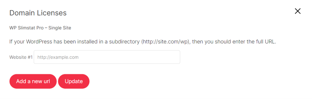Activating your license on more than one website depends on the license you get. If it is for a single site, then you can use it only on one WordPress site, like example.com. It only works on that single installation. You can’t use the same license on subdomains (e.g., site1.example.com) or subdirectories (e.g., example.com/site1). For each separate site or subdomain, you’ll need a separate license, or you can choose an Unlimited license. In case you have more than one domain and need to use SlimStat for all of them, there are some other plans for you: 2-5 sites and unlimited sites.